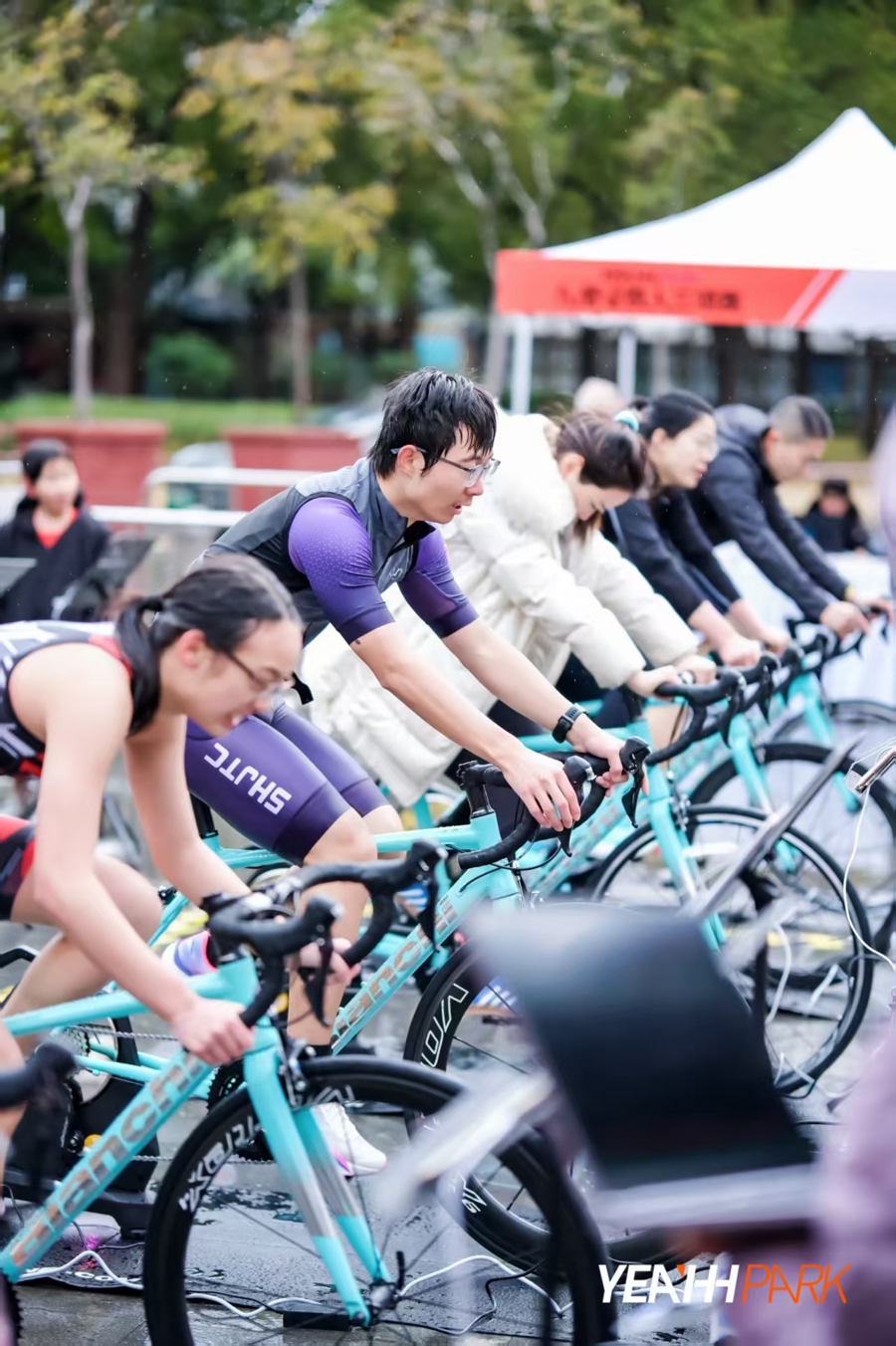 昨天的YEAHH PARK“全民铁人三项赛”在江湾体育场举行。这一入门级的迷你铁人赛吸引了近200名参赛者参加,其中既有杨浦本地“铁人”,也有生活在杨浦的外籍人士,还有两三成来自长三角周边城市,因为难度“友好”,不少新手将参加这场活动作为新年里的一场“热身”。大半天的赛事结束后,不少和家人朋友一起来参赛的选手都选择在附近的五角场、大学路逛一逛,留下足迹,也留下了消费。