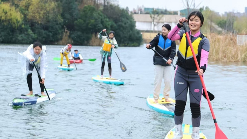 2026年的第一天,很多杨浦市民是在运动中度过的。一早登上复兴岛,带着江风的寒意出发,迎风奔跑,在“韵动杨浦·秀出来”2026年元旦迎新城市定向挑战赛中打卡杨浦5大体育公园与沪东工人文化宫等城市地标,让全身上下都热起来;冒雨赶到江湾体育场,在YEAHH PARK“全民铁人三项赛”上把游泳、骑车和跑步这三个项目轮流操练一遍,“铁人”们在露天穿着短袖运动装仍挥汗如雨;下午,一场桨板比赛在新江湾城文体公园的湖面上进行得如火如荼,岸边球场上的足球赛同样热火朝天……充满活力的一年从这里开始,体育与多元业态的叠加,让有着厚重历史的复兴岛、江湾体育场和新江湾城湿地有了更年轻的模样。