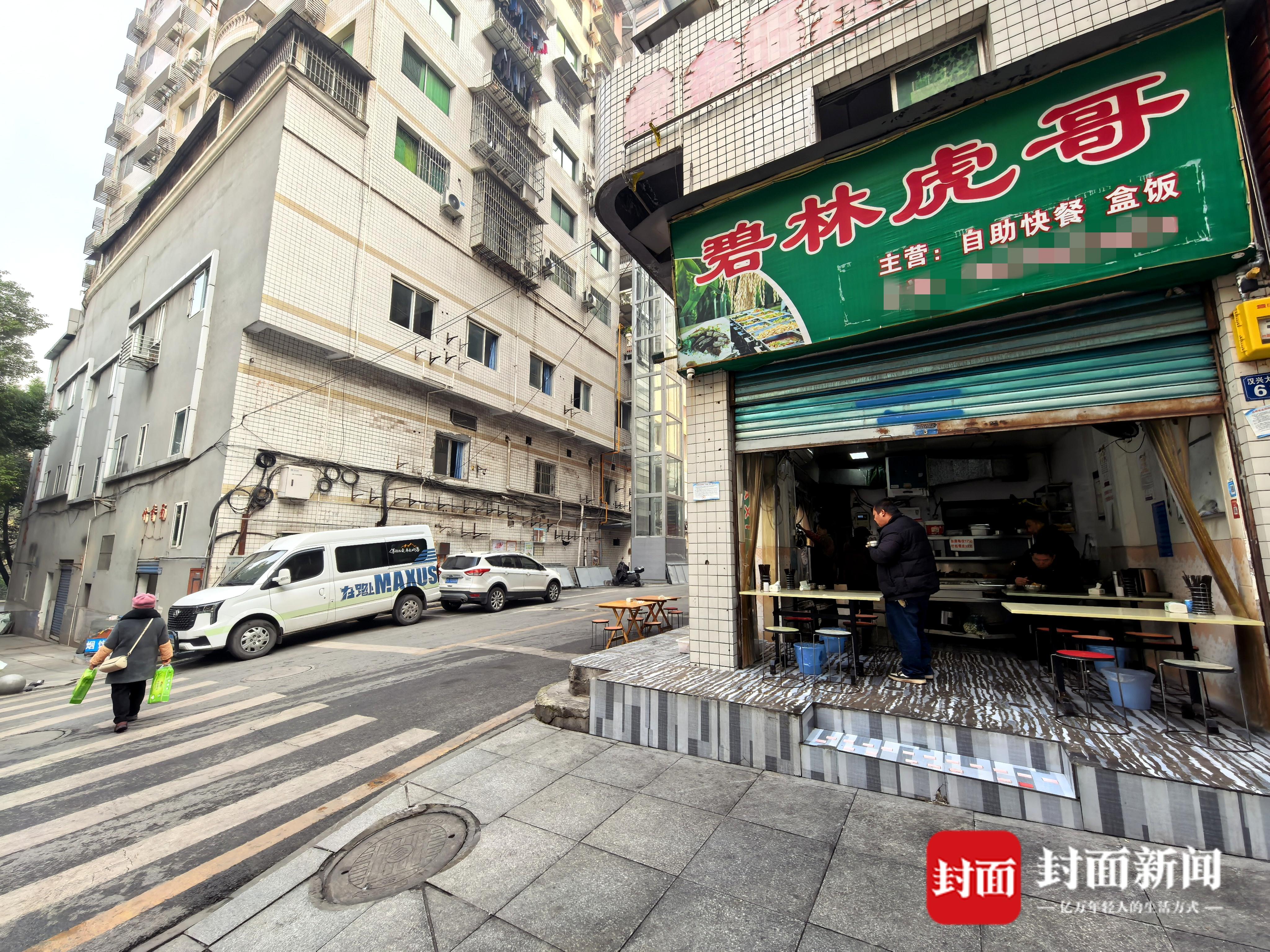 “碧林虎哥”快餐店位于路口处。曾业 摄