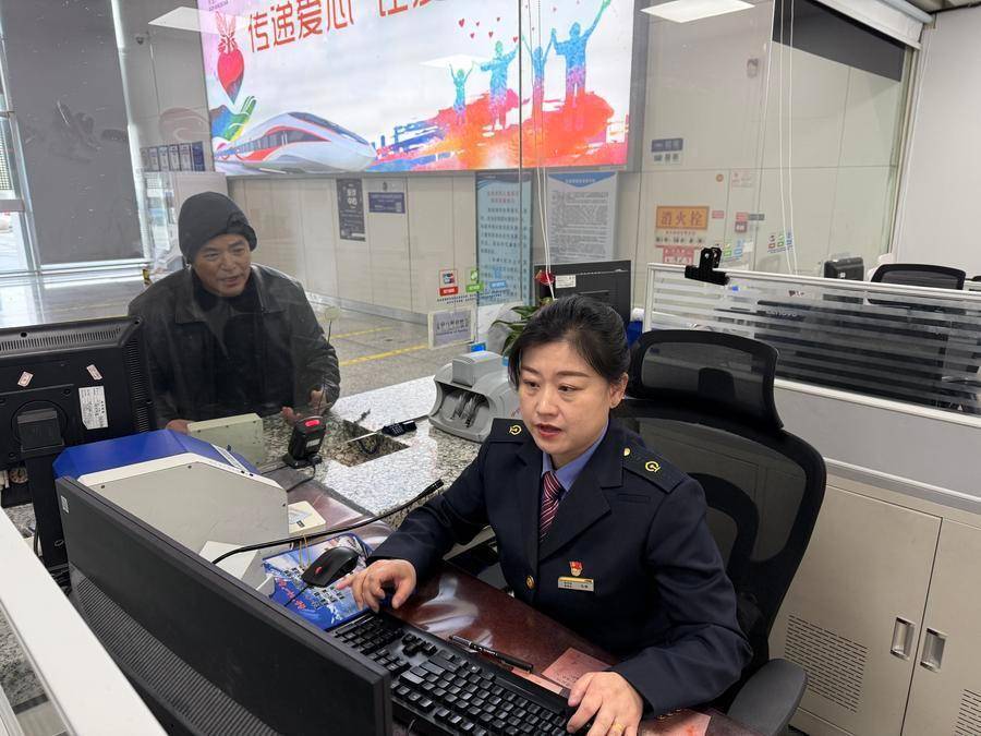 新华社南京2月2日电(记者毛俊)清晨的铁路徐州东站售票大厅,电子屏滚动着密密麻麻的车次信息,自助售票机前旅客络绎不绝。3号人工售票窗口后,售票员马茜身体微微前倾,耐心询问着老年旅客的车次信息。