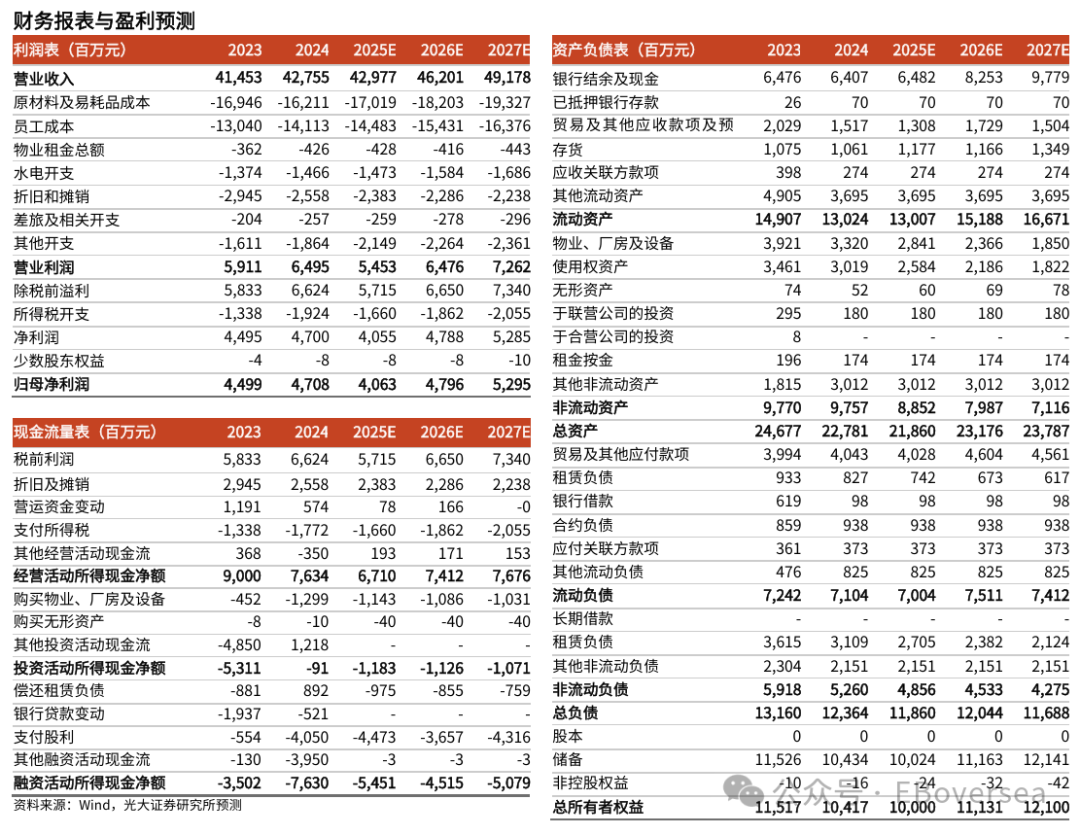 2023年以来海底捞维持高分红比例。2023年分红比例为90%,较2022年的40%大幅提升。公司于2024年首次进行中期派息,全年分红比例进一步提升至95%;25H1继续中期分红,分红比例维持在95%。以2024年的分红金额和2026/3/4的市值计算,股息率达5.4%,处在行业中较高水平。