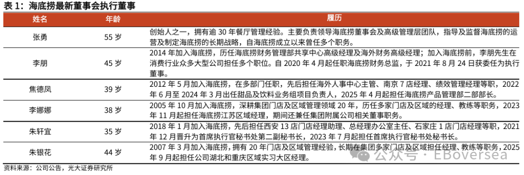 四人全部在海底捞体系内长期成长,履历覆盖大区经理、区域运营管理、产品与供应链管理、首席执行官秘书处秘书长等关键岗位,属于一线管理者。