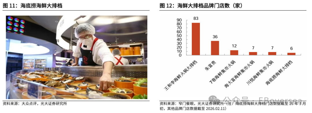 l海鲜大排档(未来核心看点):25年12月中旬开业,目前在广州、上海、青岛、武汉、南宁、福州共开设6家门店,人均消费价格在87-121元之间,采用自助取餐模式(消费者按需取餐,费用按取餐量核算),公司内部每日跟踪门店经营数据和消费者反馈。2025年大排档成为火锅赛道的热门开店模式,其人均低至五六十元,质价比突出,精准契合当下消费者的消费心理。