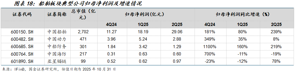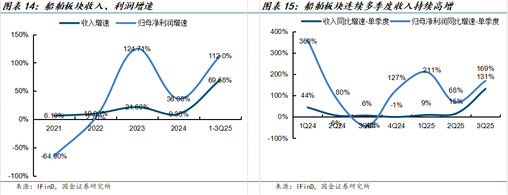 3Q25船舶行业收入增速同比+131%;归母净利润增速同比+169%。