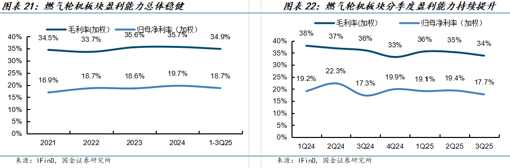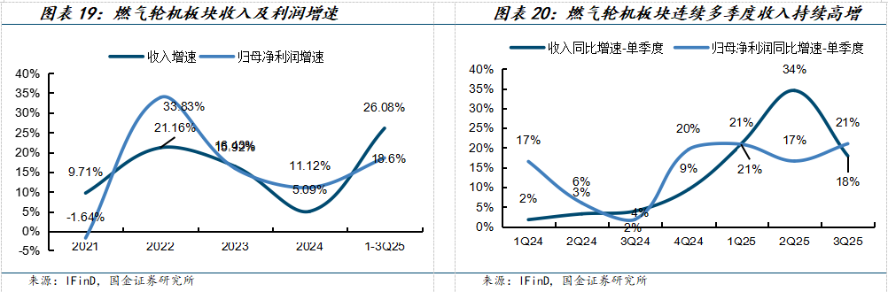 3Q25燃气轮机板块收入同比+18%;归母净利润同比+21%。