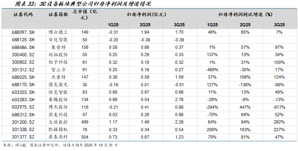 单三季度看,3C设备机械行业收入同比+22%;归母净利润同比+52%。
