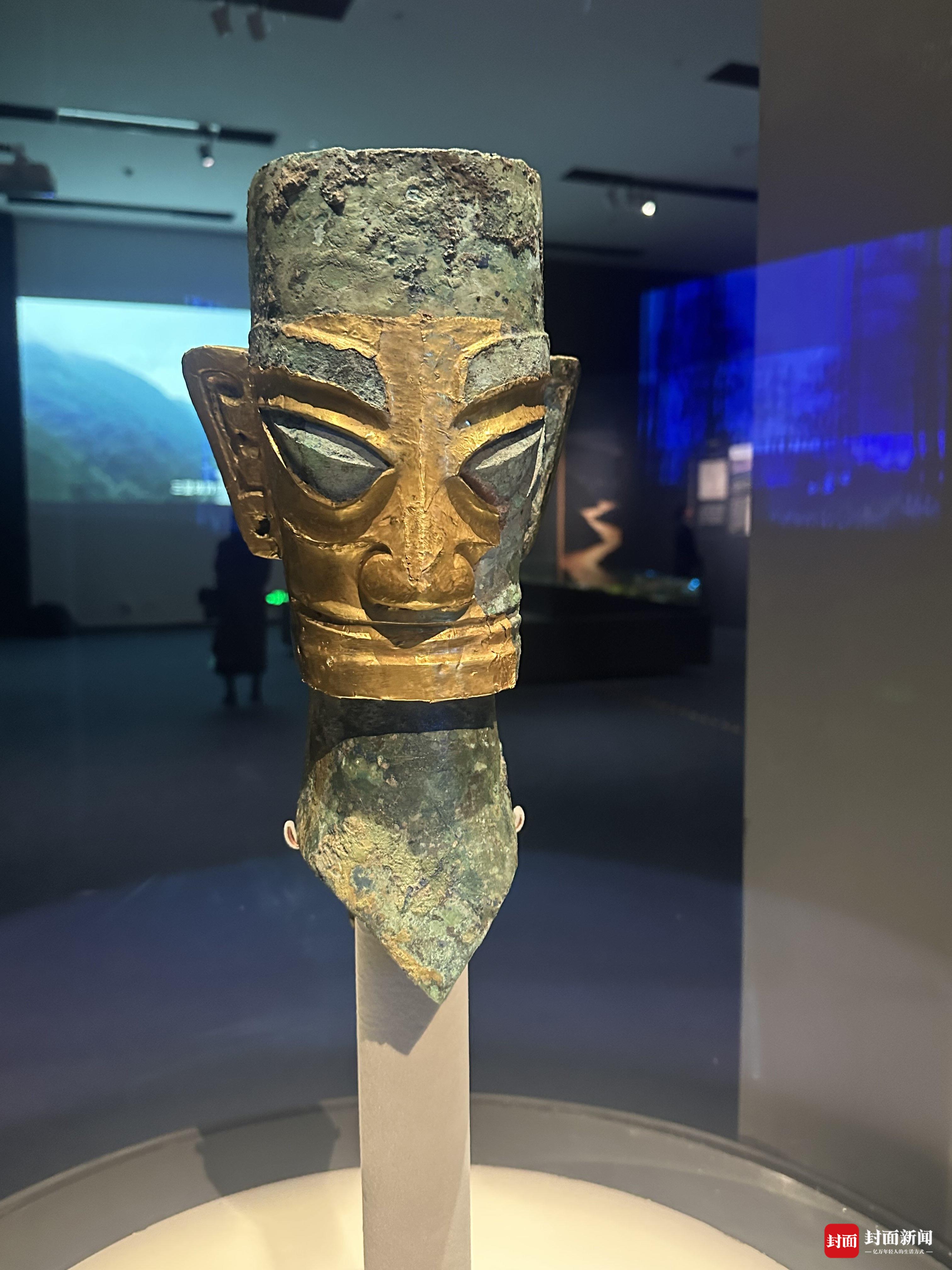 戴金面罩青铜人头像。封面新闻记者 粟裕 摄影