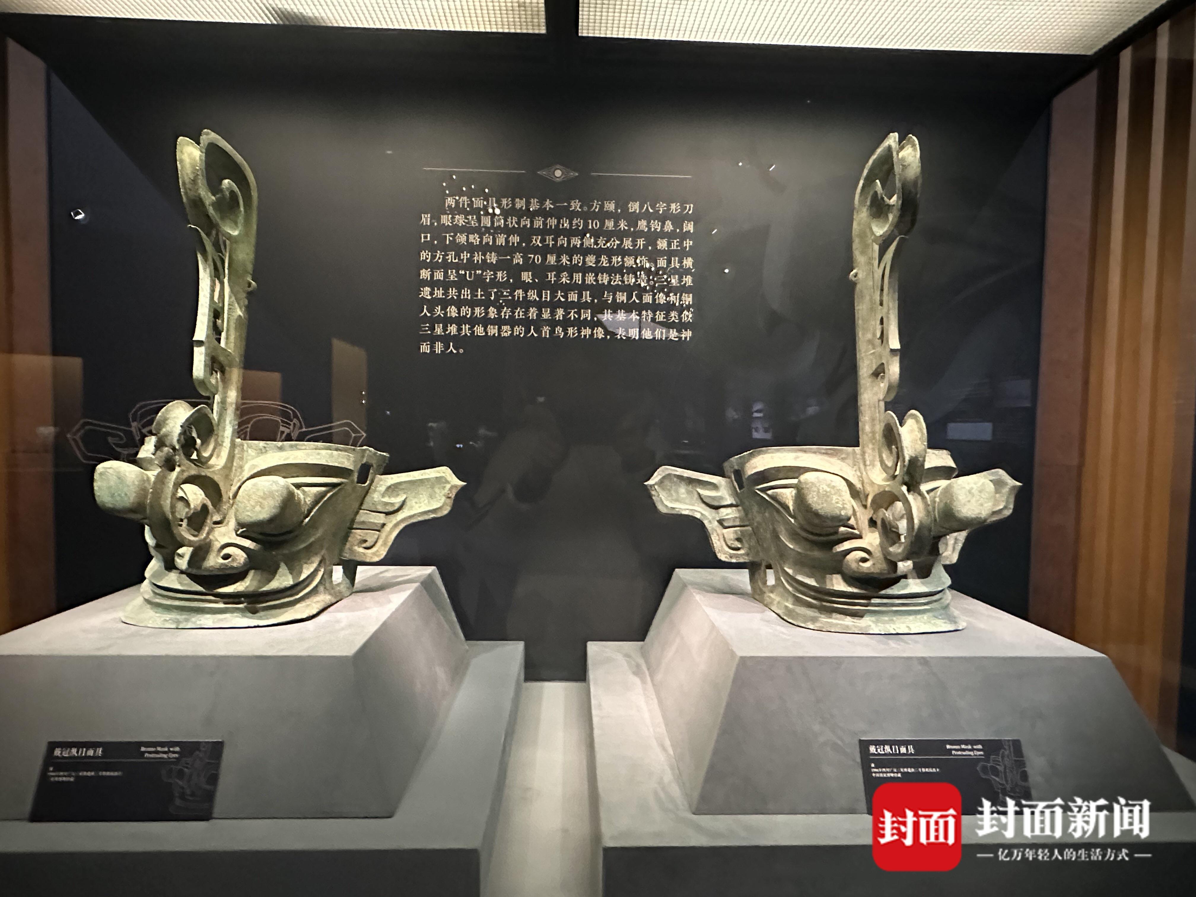 戴冠纵目面具迎来“历史性聚首”。封面新闻记者 粟裕 摄影